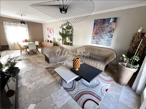 NARBONNE : Aux portes de la ville, dans un quartier résidentiel recherché l' Agence D. FIMMOSUD vous propose cette villa offrant 175 m² habitables de PLAIN-PIED qui vous séduira par sa conception non conventionnelle. Elle bénéficie de prestations haut de gamme et d’espaces de vie conviviaux et fonctionnels. Ses nombreuses ouvertures lui confèrent une belle luminosité. La grande pièce de vie lumineuse de 60 m² avec cuisine aménagée et équipée (Fours, frigo américain XXL, plaque induction et Wok Gaz , cave à vins .....) prolongée d'un vaste salon, avec une cheminée suspendue, donnant sur une grande terrasse de 24 m² exposée plein Sud avec une pergola bioclimatique. Pour votre confort, vous disposerez également d’une arrière cuisine, ainsi que d'un dressing indépendant de 18 m² attenant à une grande buanderie de 12 m², précision faite sue ces 2 piéces peuvent redevenir des chambres. Coté nuit, la villa dispose d'une superbe suite parentale de 38 m² avec salle d'eau (11 m²) et WC indépendant, et de 2 autres chambres avec chacune sa salle d'eau et ses toilettes dont la particularité est d'être indépendantes de la villa. Cette conception est un atout pour une famille avec ados ou pour recevoir. Toutes les pièces de la maison s'ouvrent sur une terrasse arborée et sur la piscine dotée d'un volet roulant. La villa dispose également d'une superbe terrasse de toit de 153 m² avec vue dégagée sur la ville. Emplacement couvert pour 2 véhicules avec borne de recharge électrique, Abri de jardin de 24 m², 2 portails motorisés PRESTATIONS DE QUALITÉS - POMPE A CHALEUR GEOTHERMIQUE Chauffage au sol / Climatisation - ASPIRATION CENTRALISÉE – MENUISERIES ALU et VOLETS ELECTRIQUES ====================== CONTACT: Didier FAURE au 06 85 07 03 64. pour plus de renseignements =================== Vous souhaitez être rappelé plus tard pour ce bien? Envoyez "RAPPEL réf 1510" par SMS au 06 85 07 03 64. Retrouvez l'ensemble de nos biens sur notre site: www.dfimmosud.fr